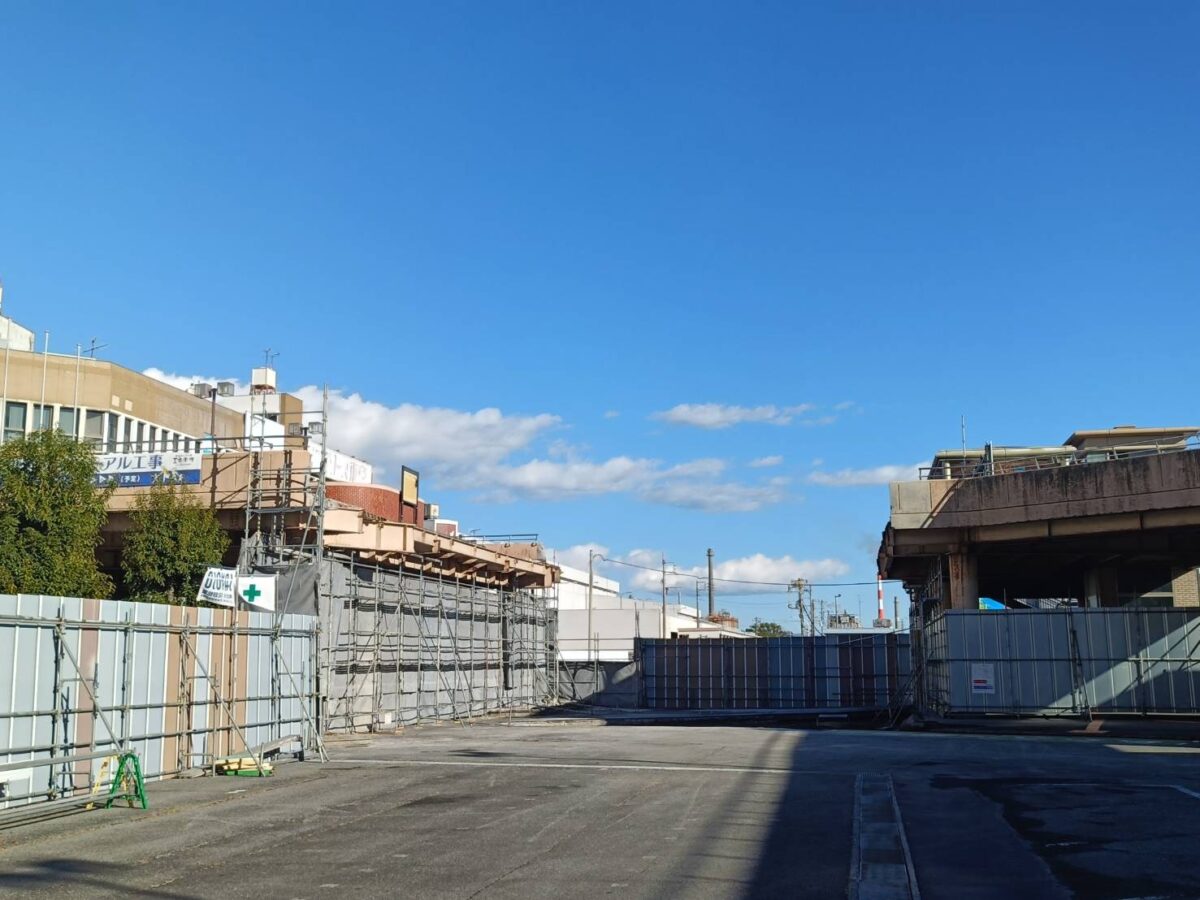 9月30日をもって、ペデストリアンデッキの北側が全面通行止めとなりました。今後、ペデストリアンデッキの一部取り壊し工事に向けて工事を進めていきます。