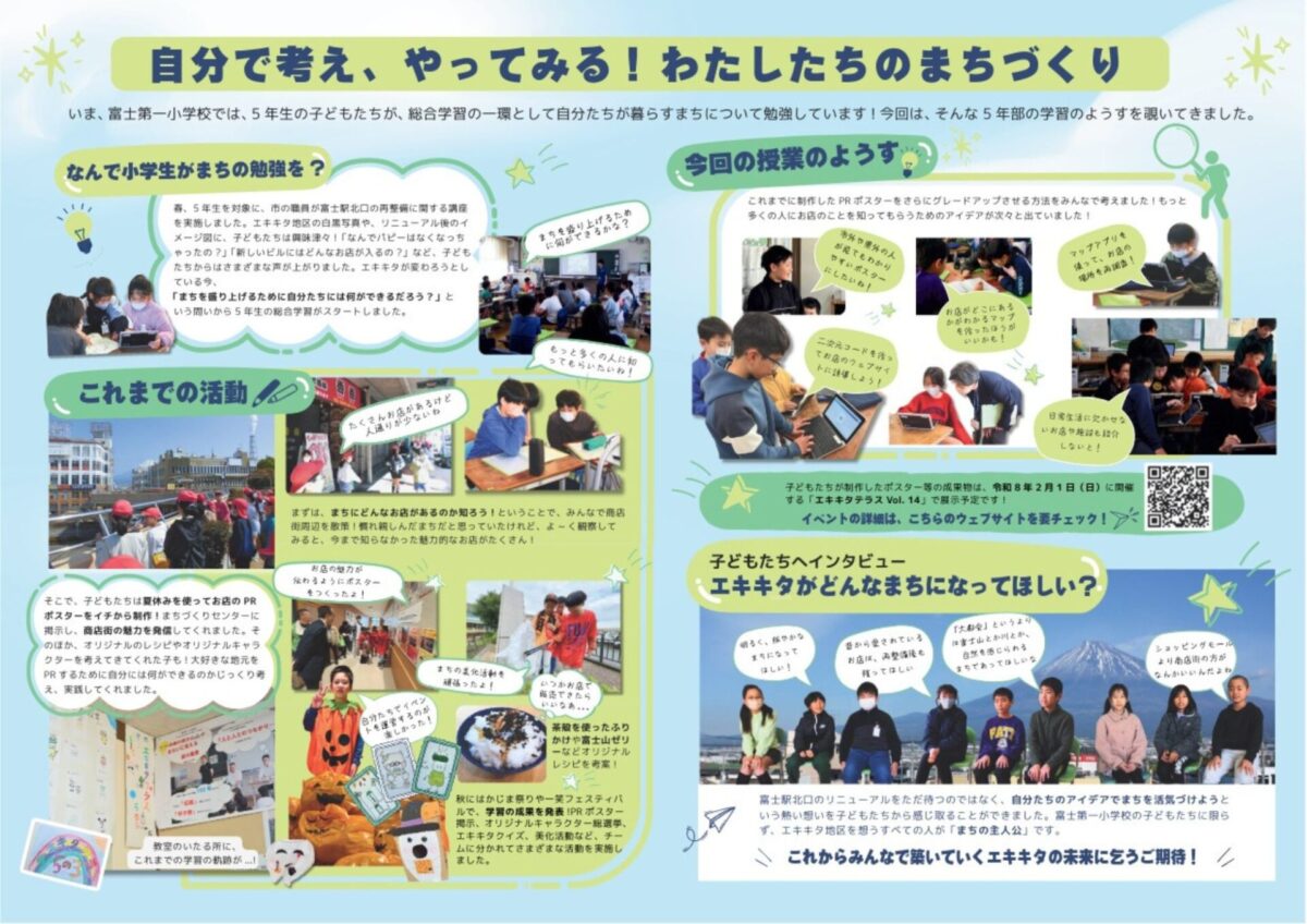 今回は、富士第一小学校5年部のまちづくり教育に密着!自分たちが暮らすまちの活性化に向けてさまざまな活動をする子どもたちの様子を覗いてきました。